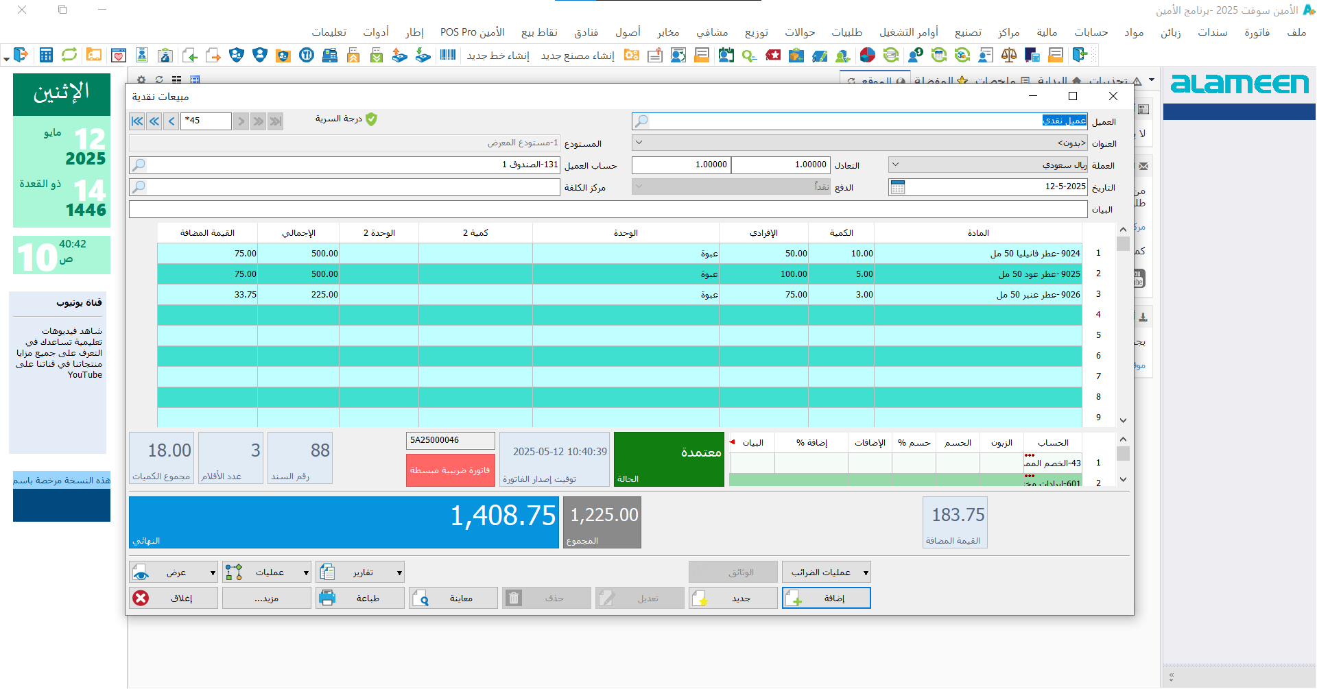 بــرنــامــج الأمــيــن للمحاسبة لمحلات العطور والهدايا هو الحل المثالي الذي يمكنك من تسجيل الــمــبــيــعـات، ضبط المخزون، متابعة الأرباح، وإدارة الموردين بكل سهولة، مما يساعدك على تحسين أعمالك وزيادة الأرباح