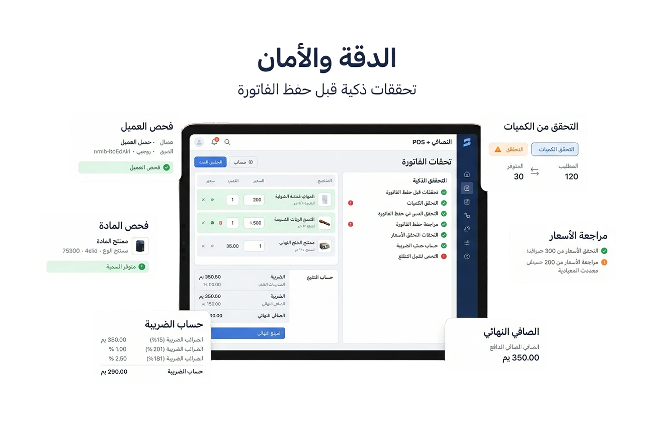 وربطهــا مباشـرة بفاتورة المبيعات، مع رقابة دقيقة تمنع تجاوز