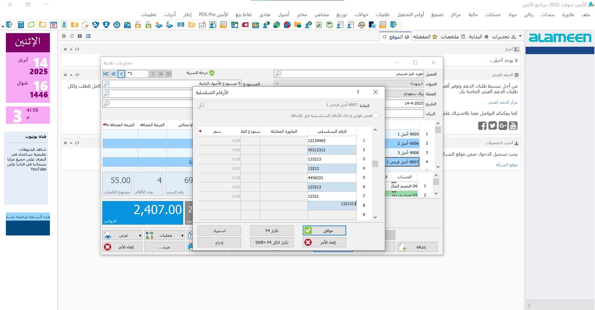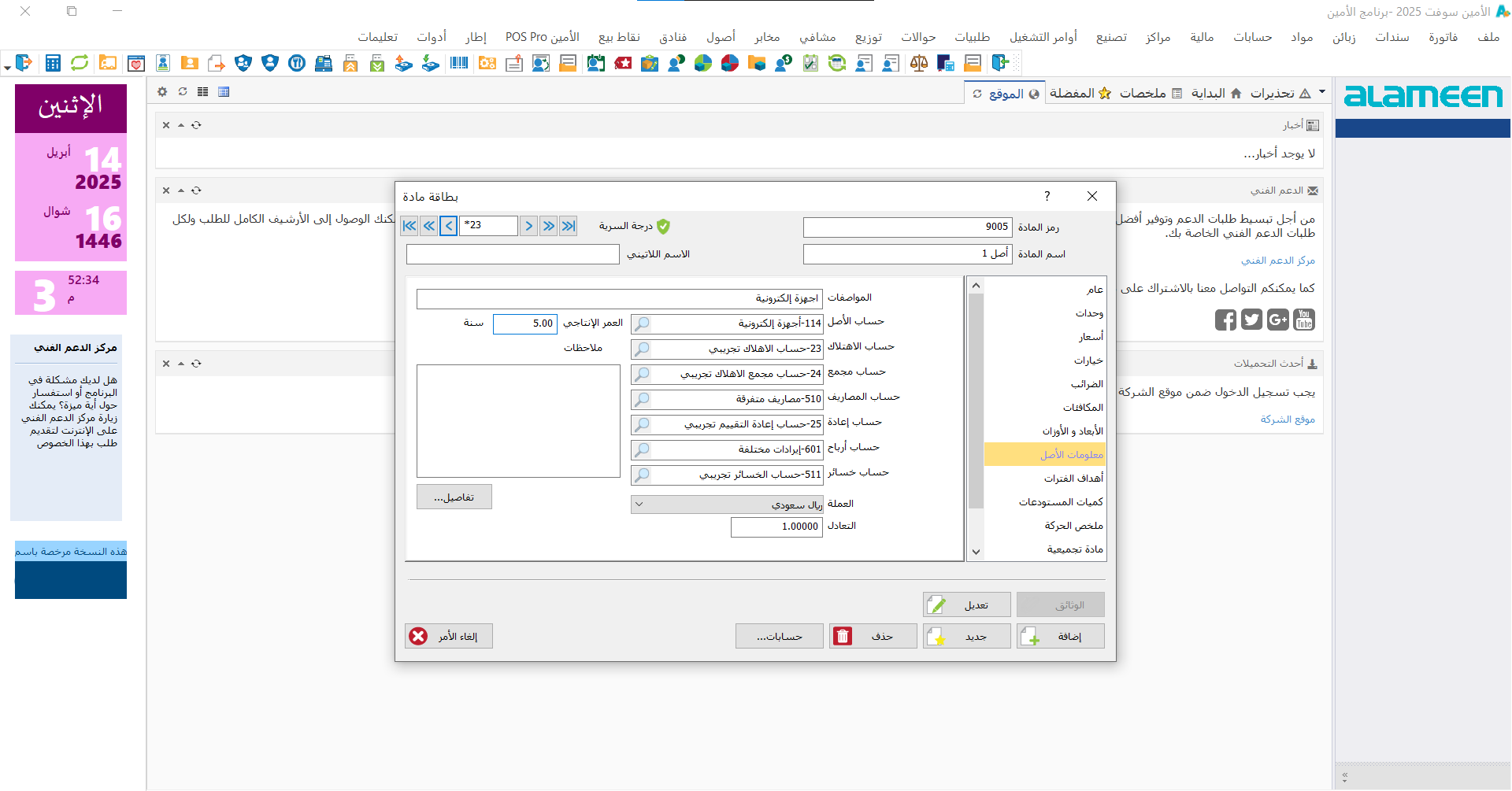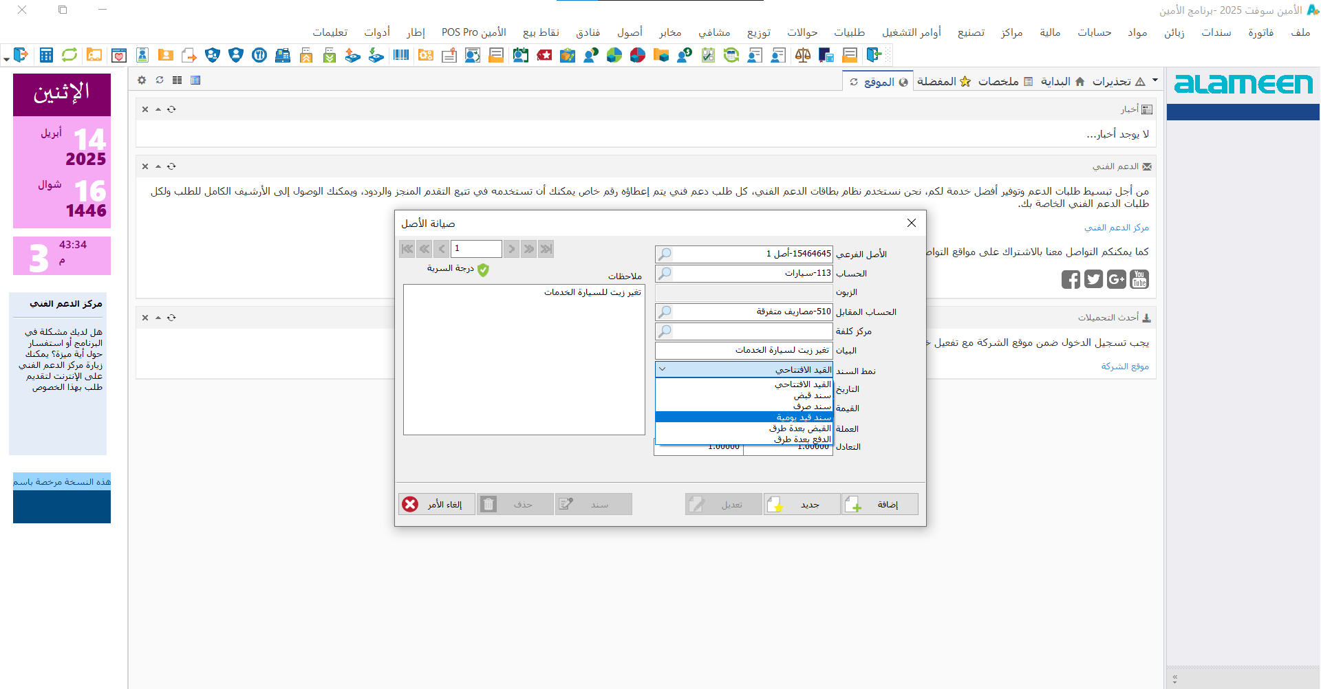 باستخدام دليل الأصول تستطيع القيام بإضافة أصل جديد, أو حـذف أصل