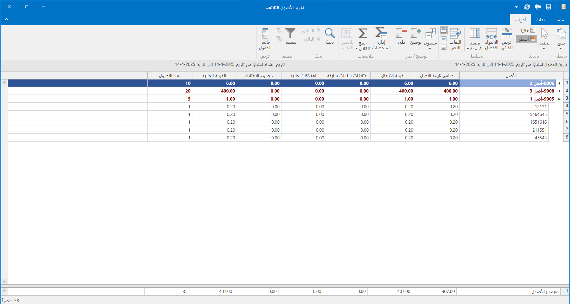 يوفــر البــرنامــج العديد من التقارير التي تساعدك على دراسة الأصول